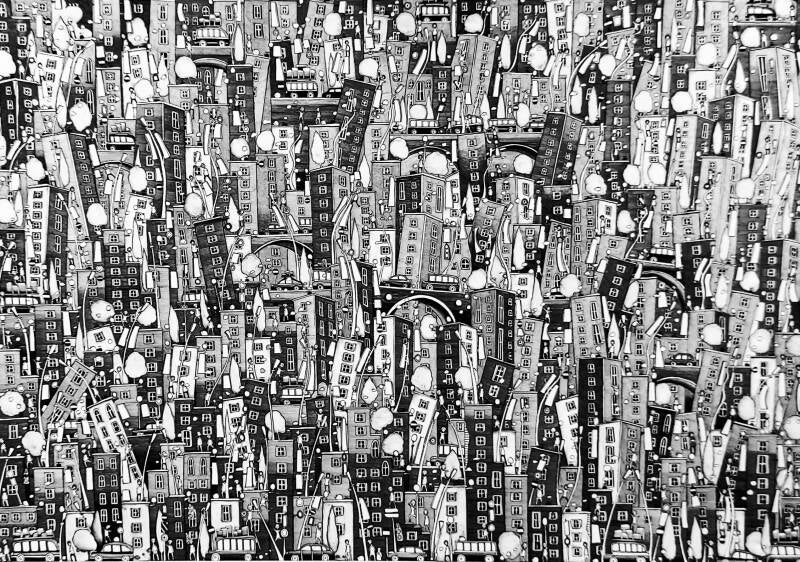 "Io sono un autodidatta, non ho imparato a disegnare con i tutorial di internet, ma sfogliando la Settimana Enigmistica. Non so se ci avete fatto caso, ma ci sono sempre delle piccole città abitate: io non ho dovuto fare altro che ingrandirle. Questo è l’unico riferimento che ho per la mia arte. Devo anche dire che non faccio un’arte “ruffiana”, nel senso che non cerco di attirare l’attenzione su quello che faccio in maniera deliberata. Costruisco le mie città pezzo per pezzo, senza avere un’idea dell’insieme a priori. Prendo il foglio, disegno la casa e la coloro. Poi ci inserisco il dettaglio e vado avanti. La città cresce con me, una casa dopo l’altra. Si tratta di un’evoluzione: la mia, attraverso le mie città. Infine c’è il gatto: lo metto sempre, è la mia firma ".
